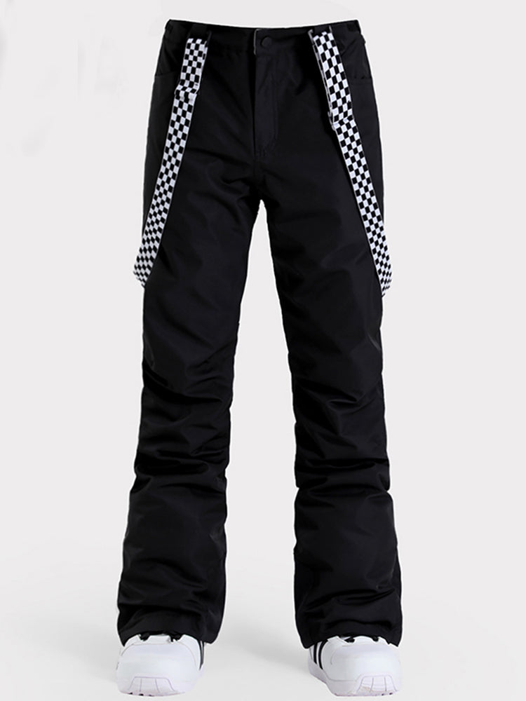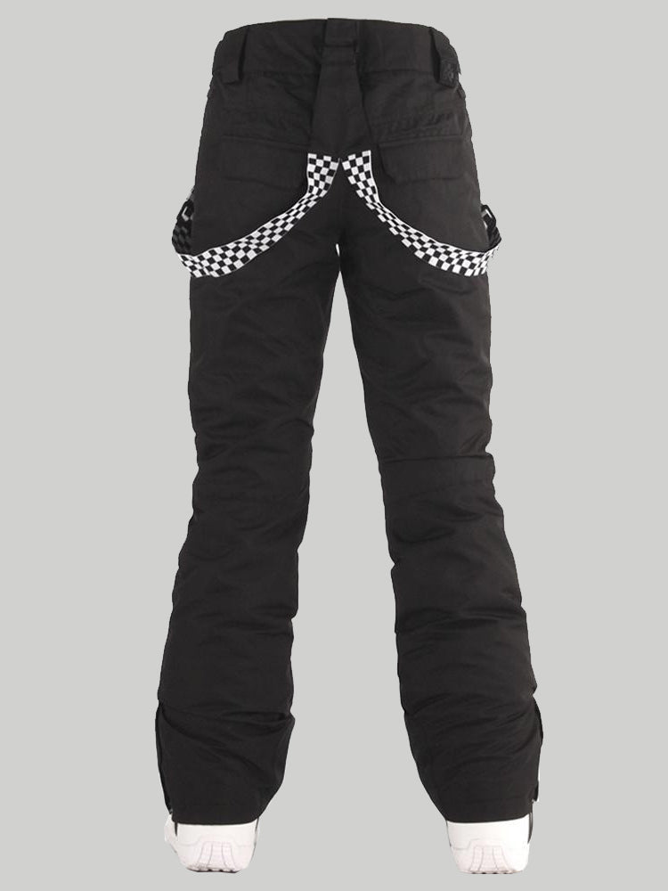 Women's Black Flare Snow Pants with Checkered Suspenders