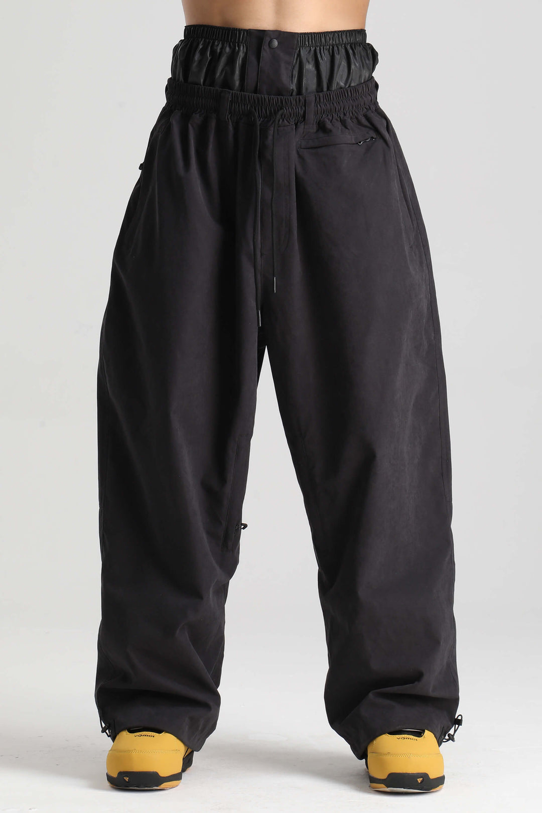 Men's Black Baggy Soft Brushed Retro Snow Pants