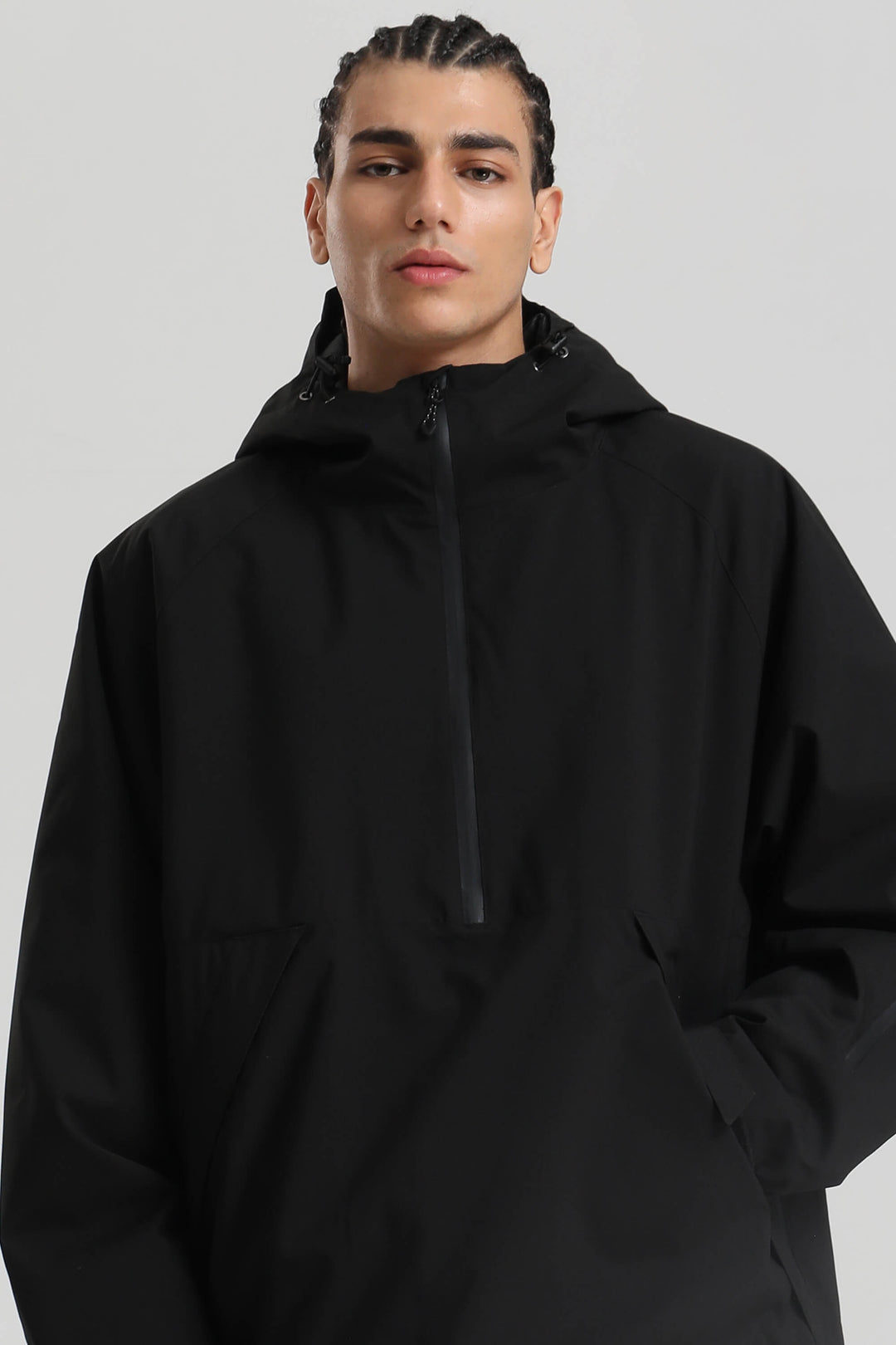Men's Black Minimalist Half-Zip Waterproof Insulated Snow Anorak