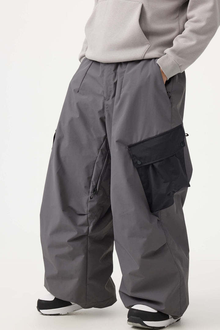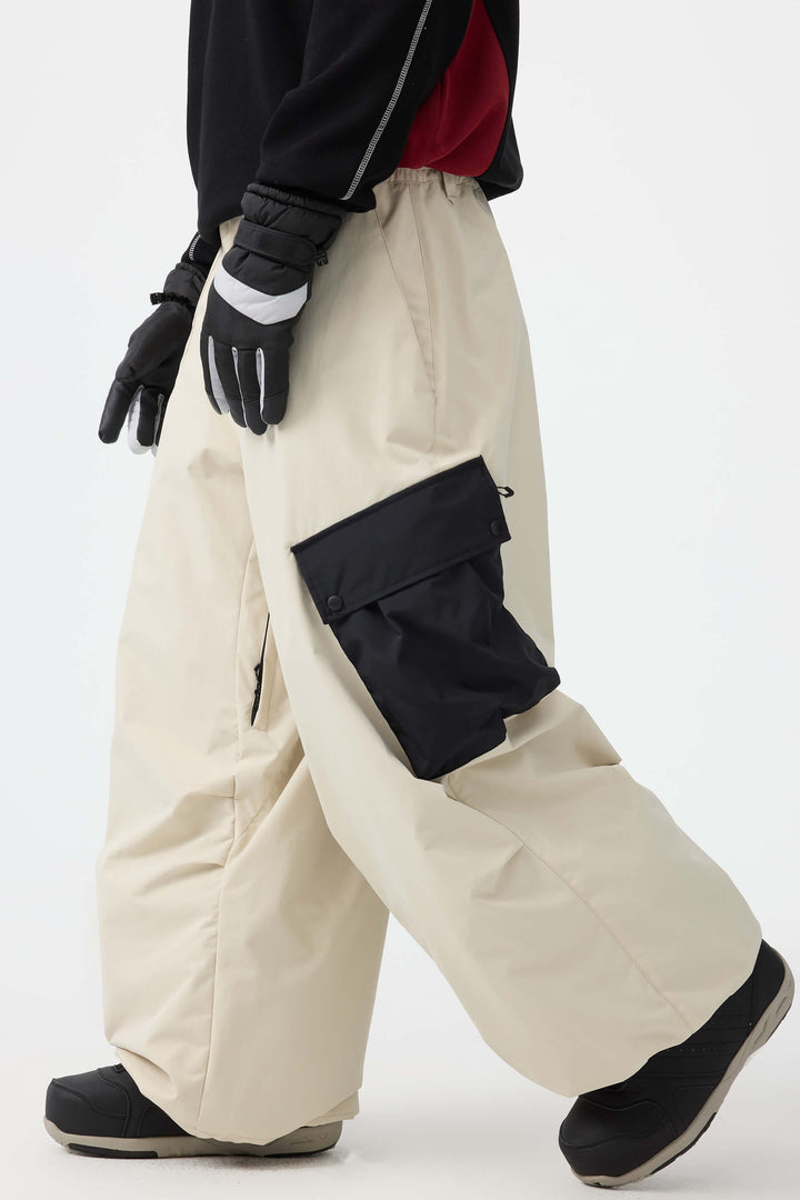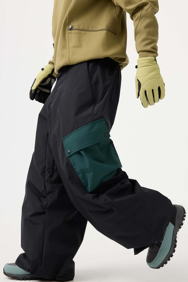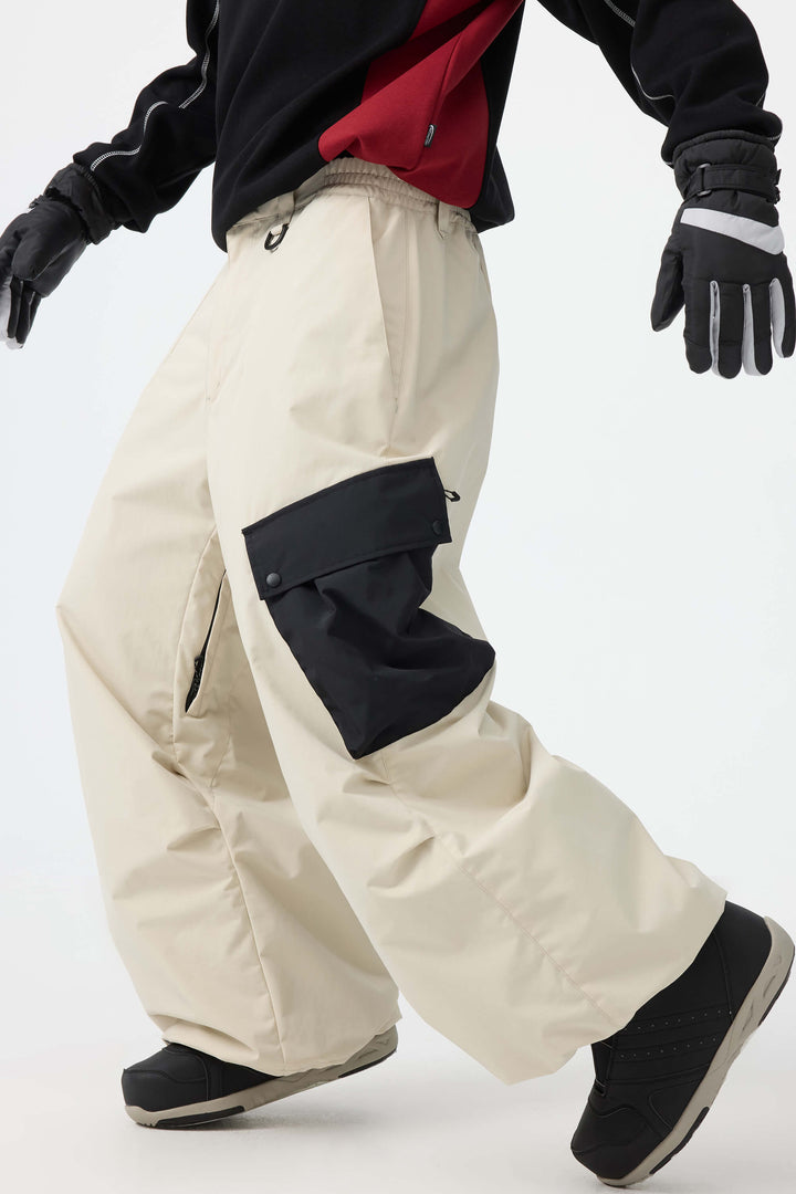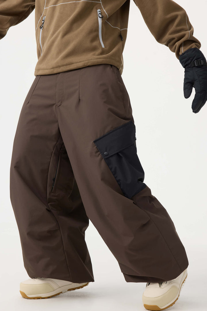 Men's Coffee Baggy Color-Blocked Cargo Pocket Snow Pants