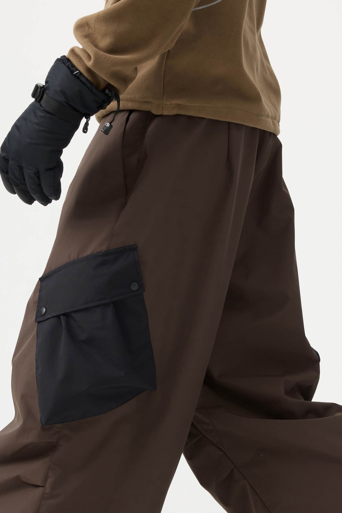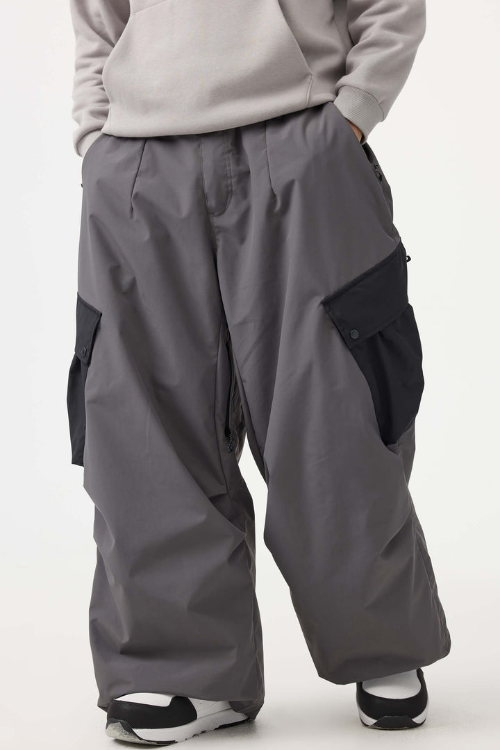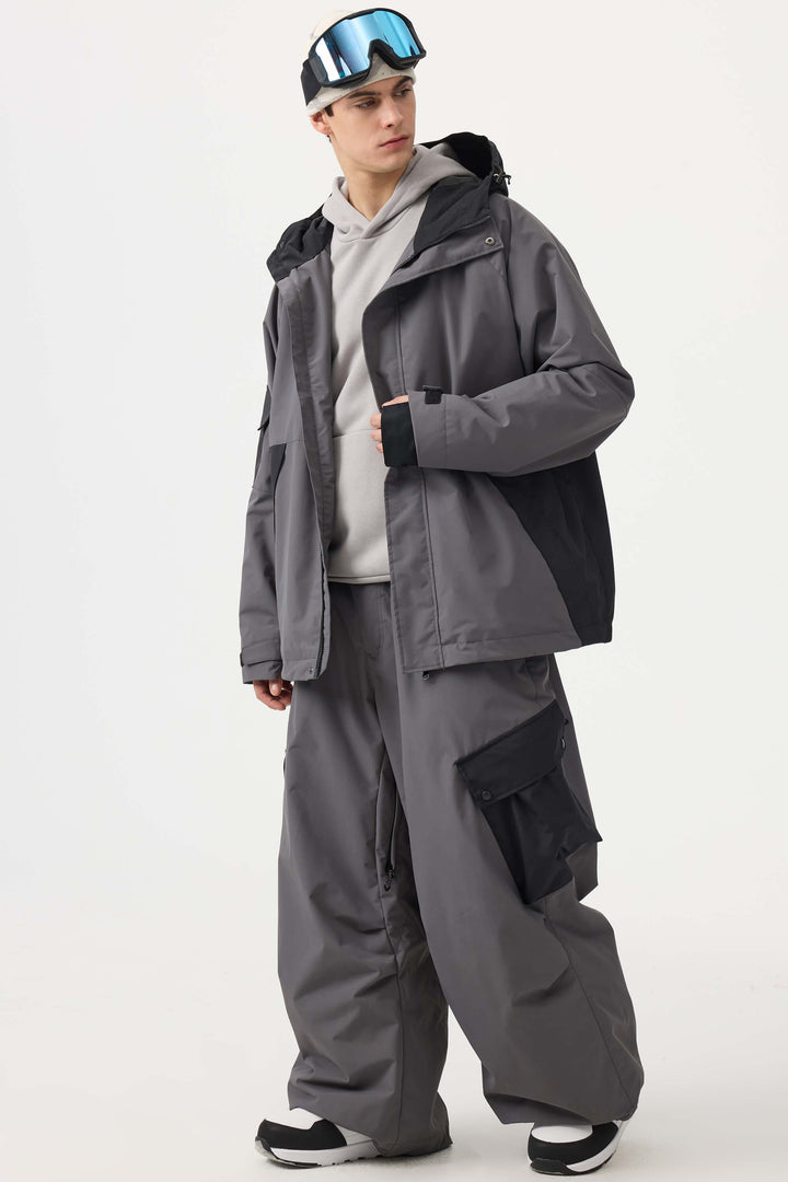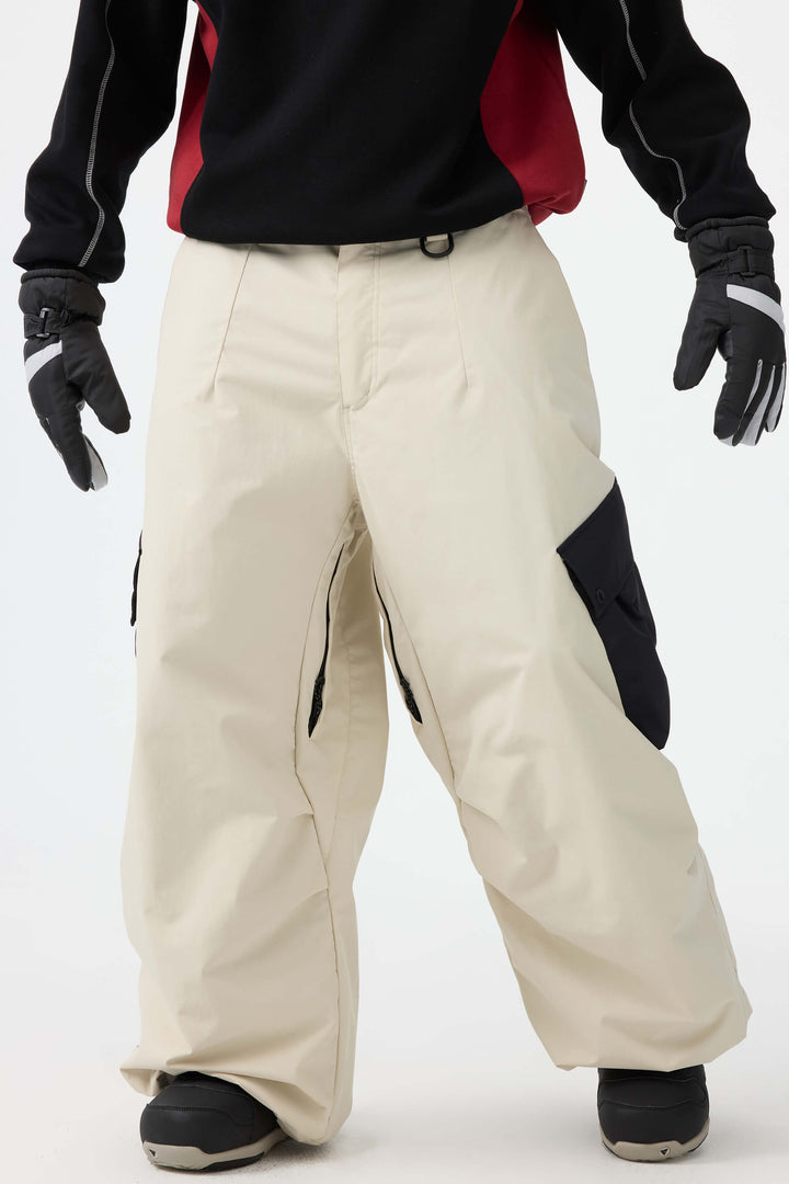 Men's Coffee Baggy Color-Blocked Cargo Pocket Snow Pants
