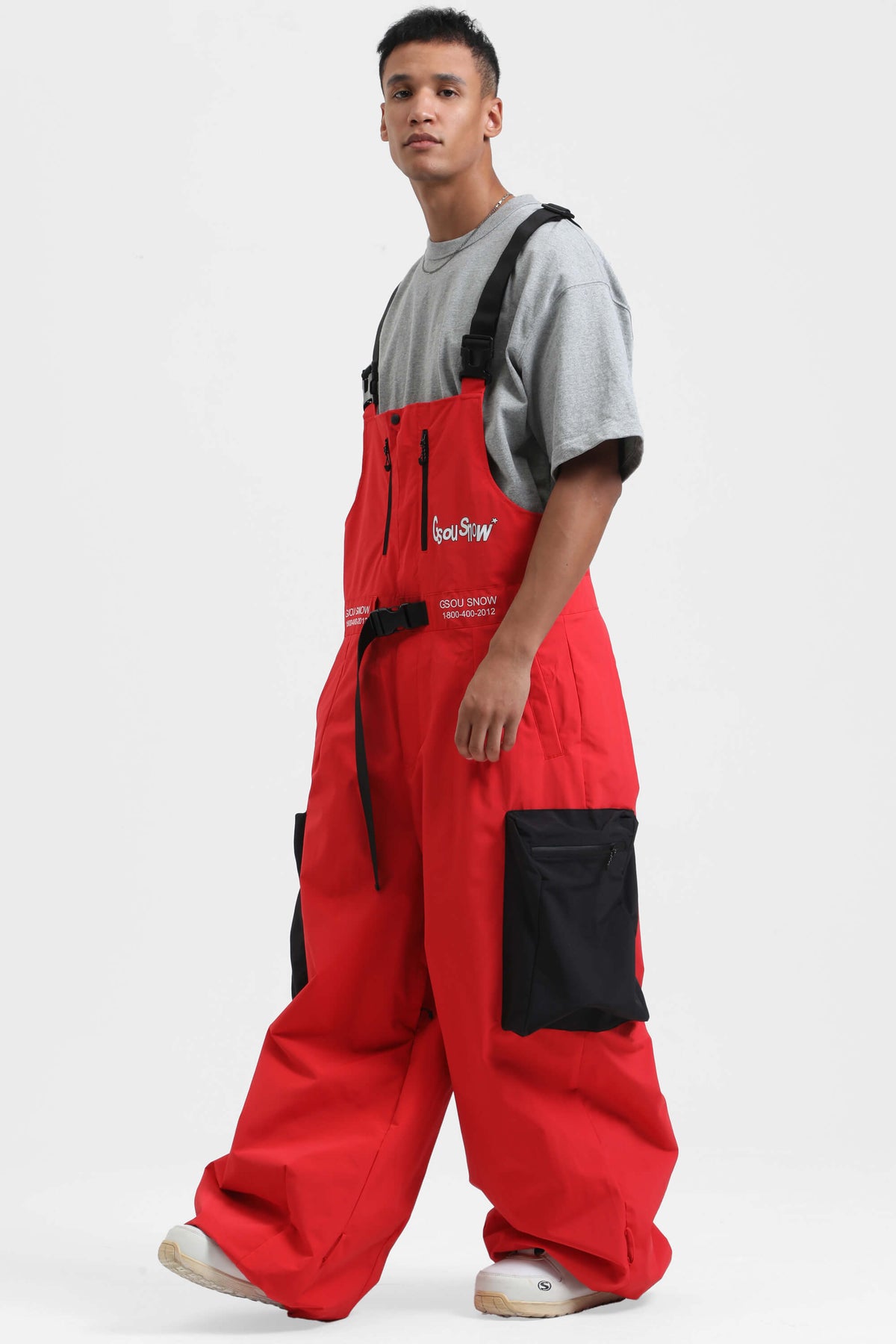 Men's Hot Pink Workwear Style Built-in Belt Super Snow Bibs