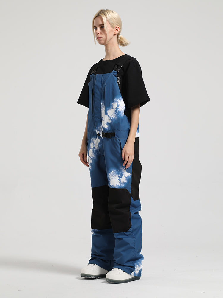 Women's Tie Dye Blue Full Front Zip Snow Bibs with Hook & Loop Closure