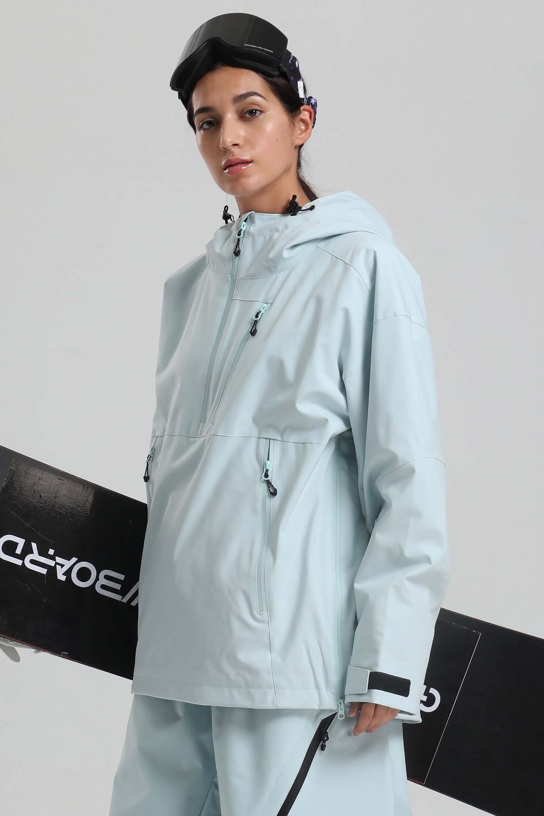 Built for deep snow and long days on the mountain, this oversized anorak offers full protection with a 15K waterproof, 10K breathable shell. Fully sealed water-resistant zippers and adjustable hood block out wind and snow, while the one-side two-way zip and center half-zip ensure easy venting. A powder skirt, thumbhole cuffs, and secure zip pockets keep you covered from first chair to last run.