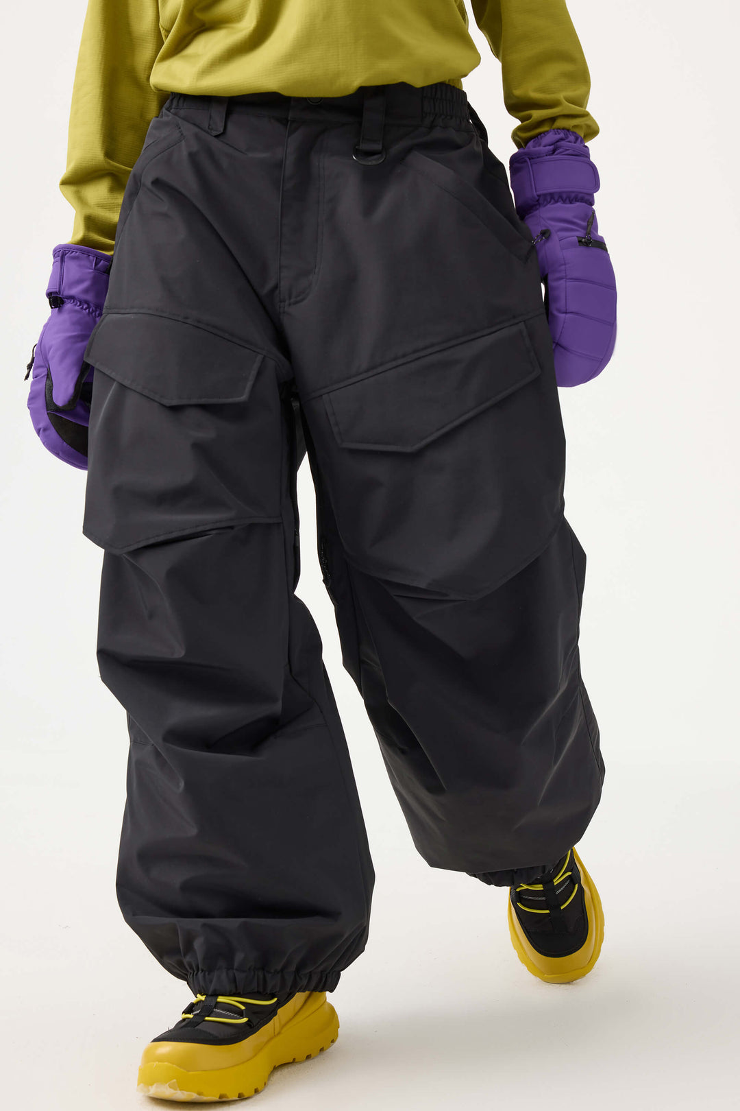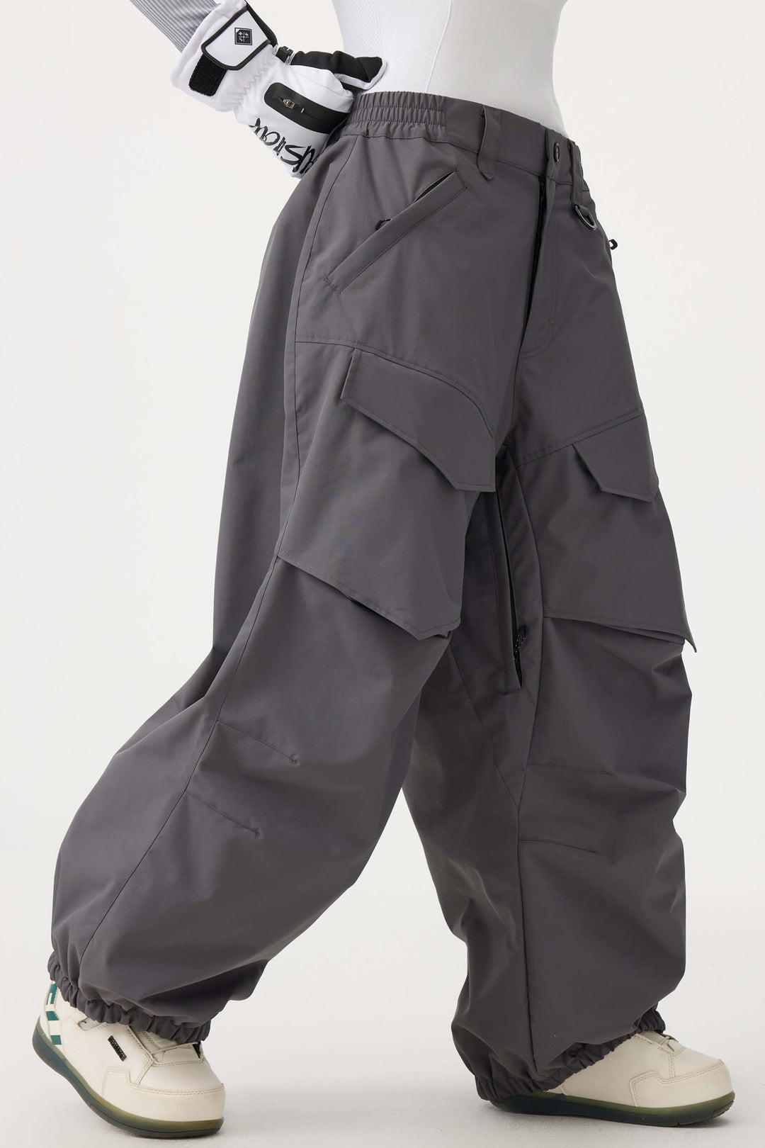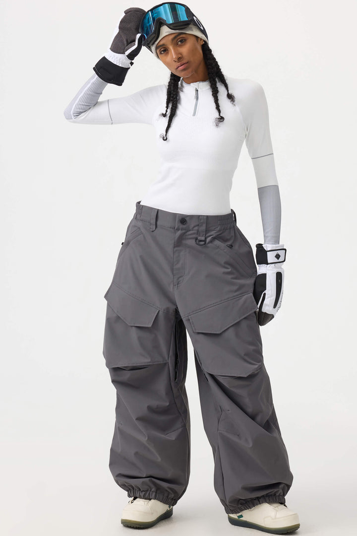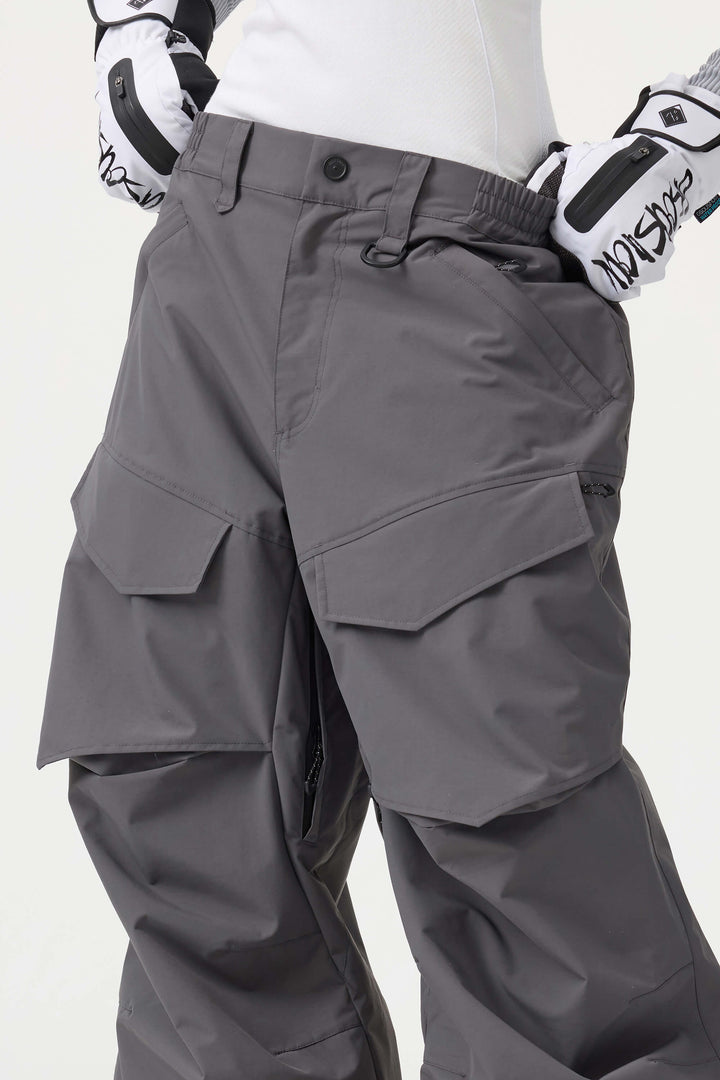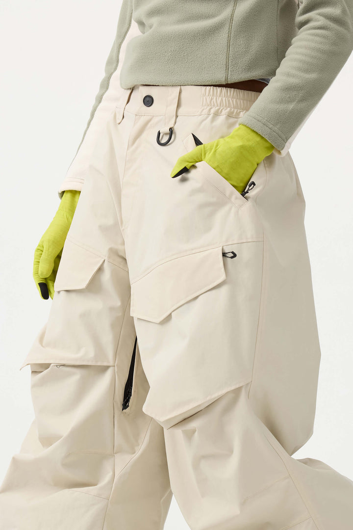 Crafted with advanced nylon weaving and a water-resistant coating, these pants offer superior abrasion resistance and long-lasting durability. With a next-gen silicone anti-slip powder skirt, they ensure a snug, windproof seal that keeps you warm while rocking a baggy look. Four large pockets and key hook provide added practicality.