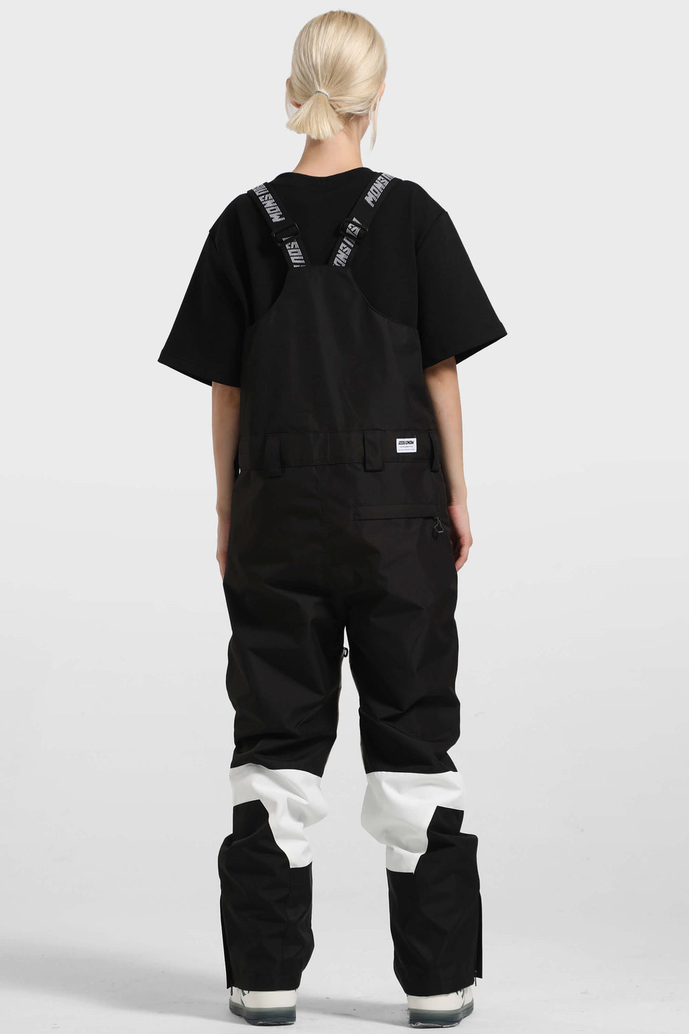Women's Black & White Multi-Pocket Snow Bibs