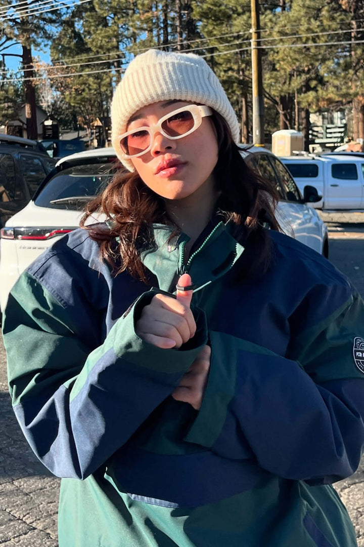 The GSou Snow ski Anoraks feature a color-block design and are both waterproof and warm. They also come with an adjustable hood, adjustable cuffs, and a powder skirt. Right-side underarm zipper vent allows for easy access to the bib, while the hem includes a drawstring and snap buttons.