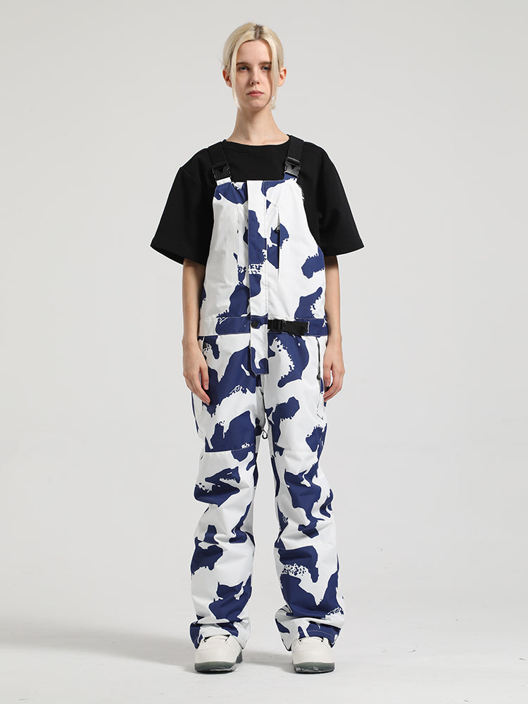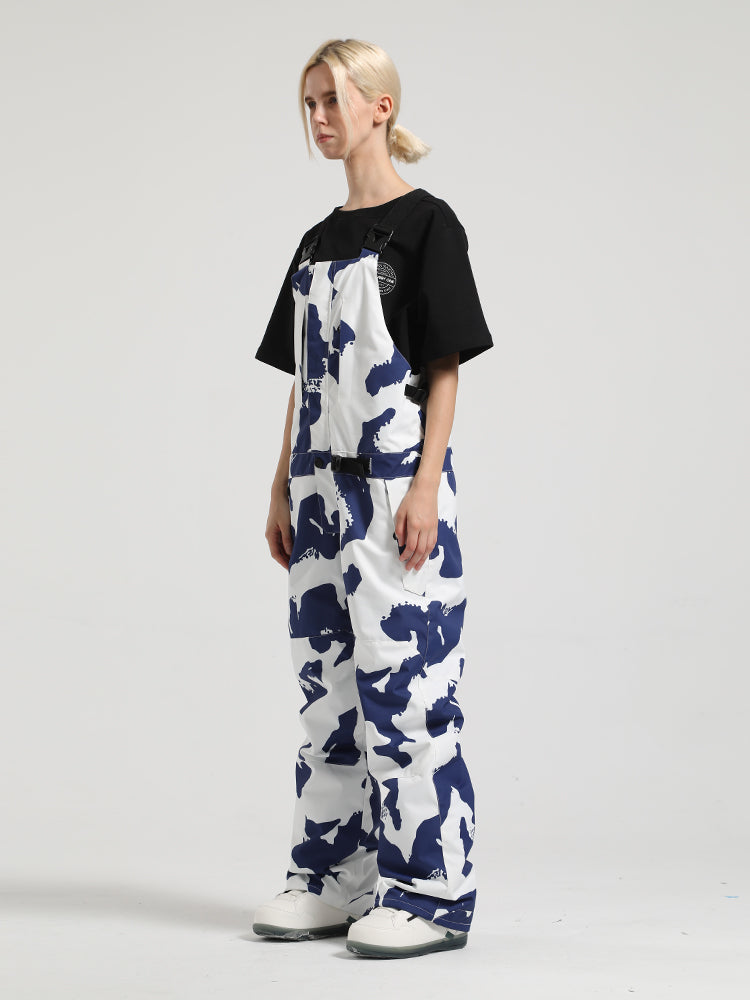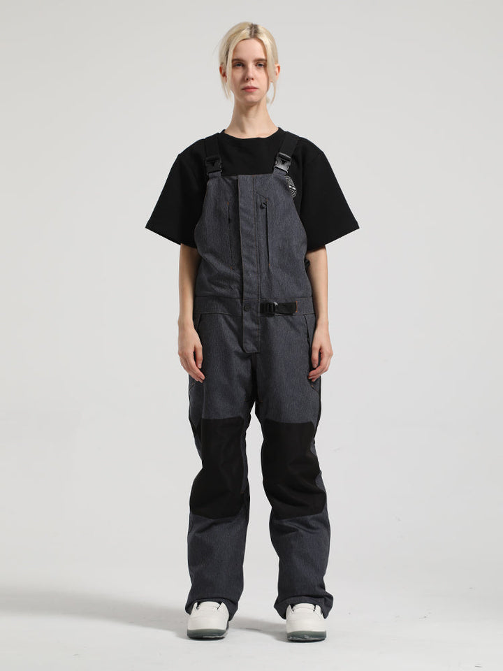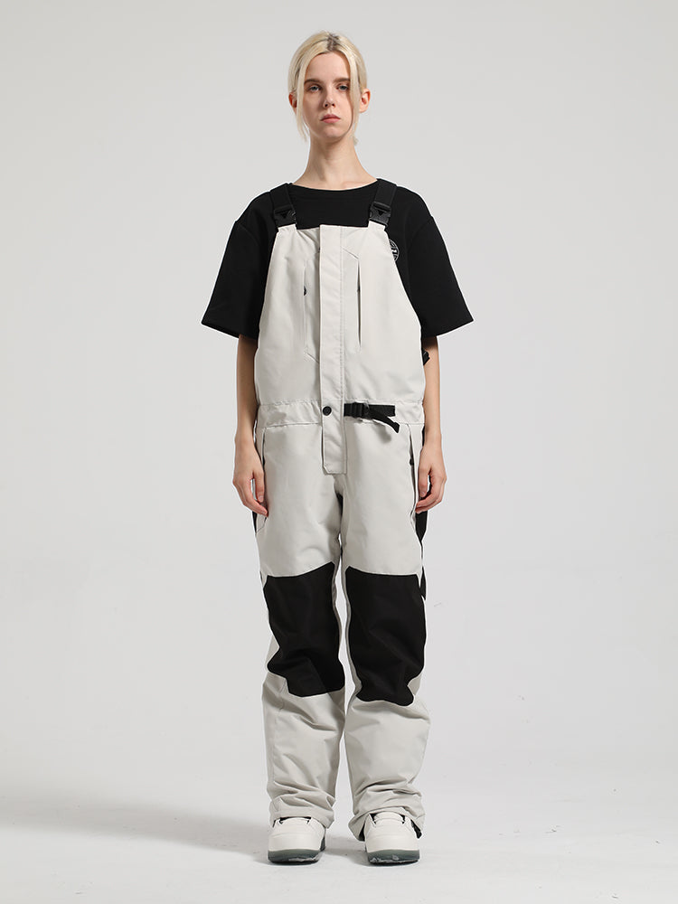 Women's Khaki Full Front Zip Snow Bibs with Hook & Loop Closure