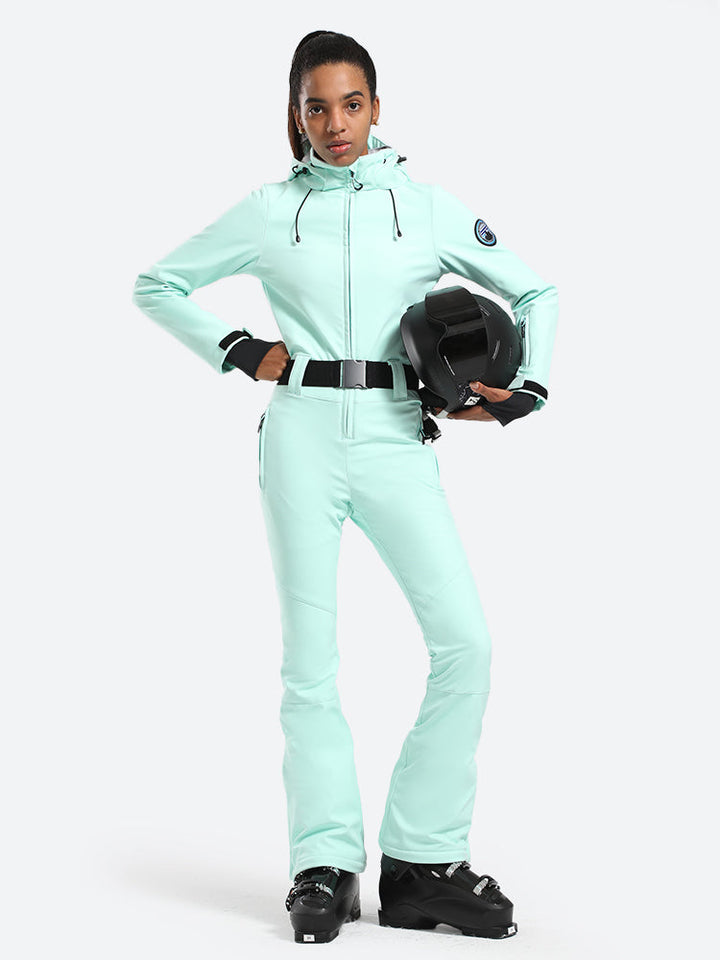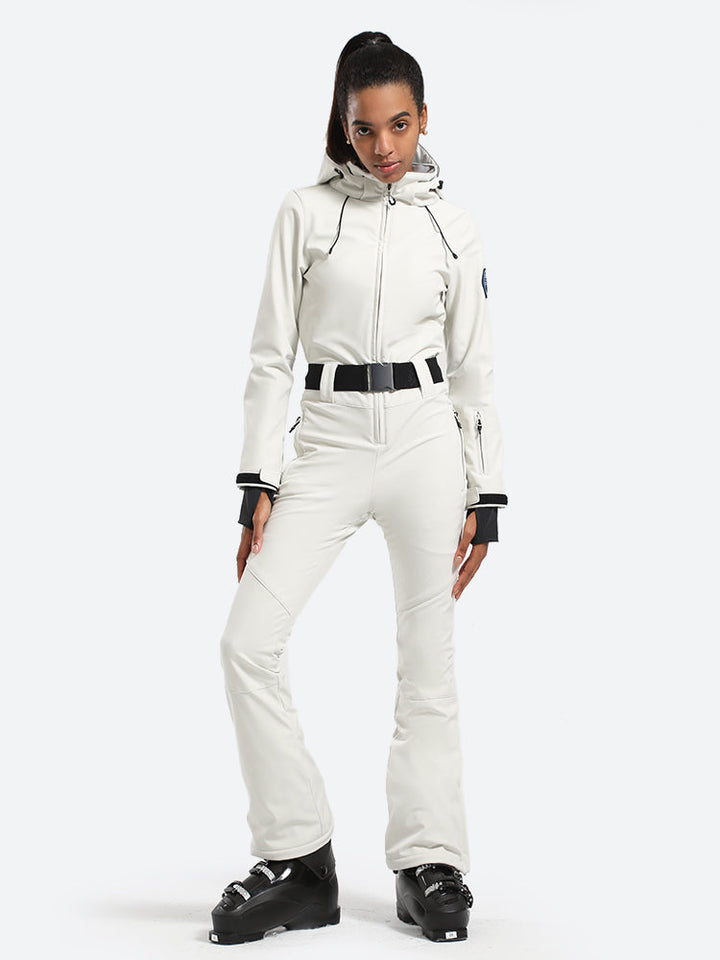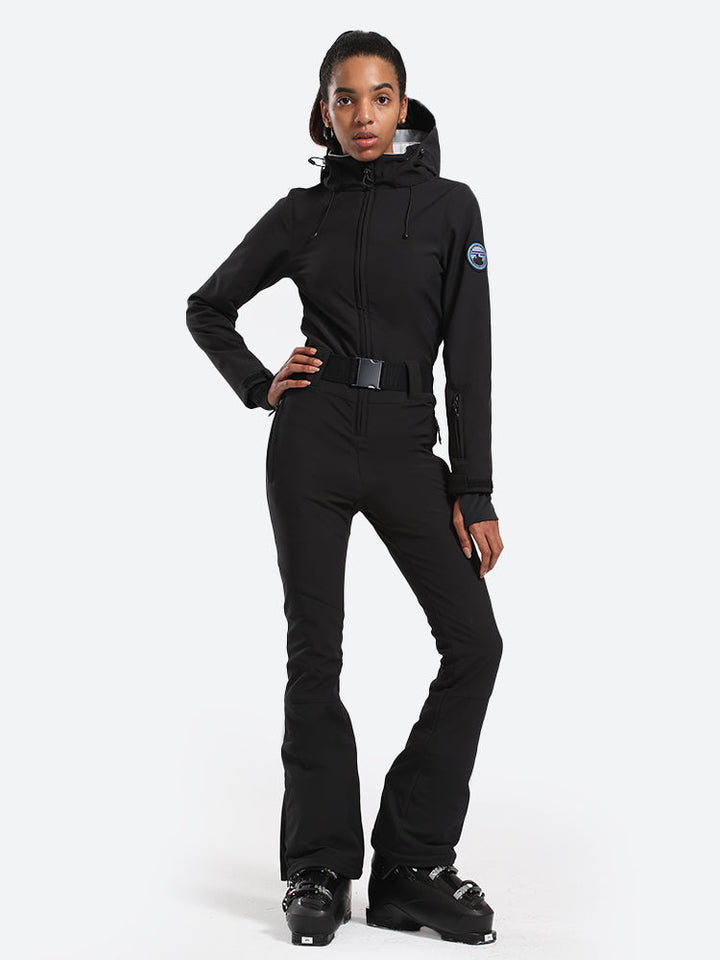 The GSou Snow one-piece ski suit delivers unparalleled coziness and ease of movement, enhanced by practical features like a removable hood, two thigh pockets, a pass pocket on the cuff, and an adjustable waistband.
