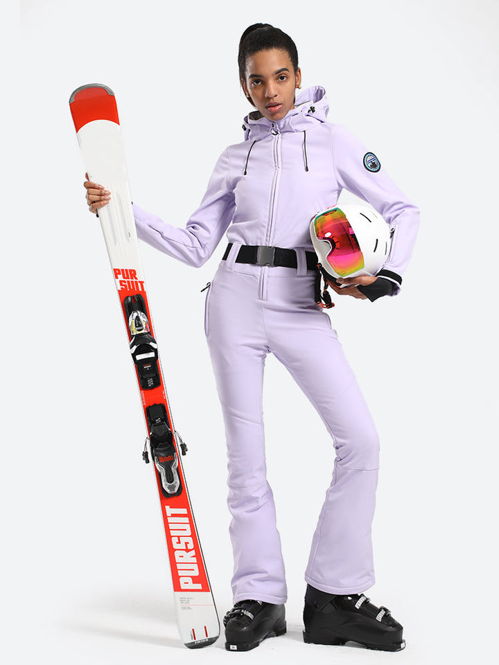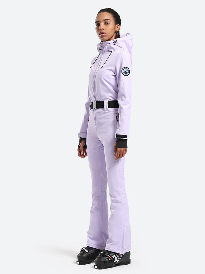 Women's Lavender One-Piece Ski Suits with Removable Hood