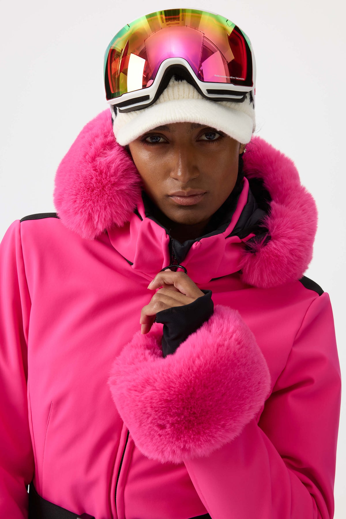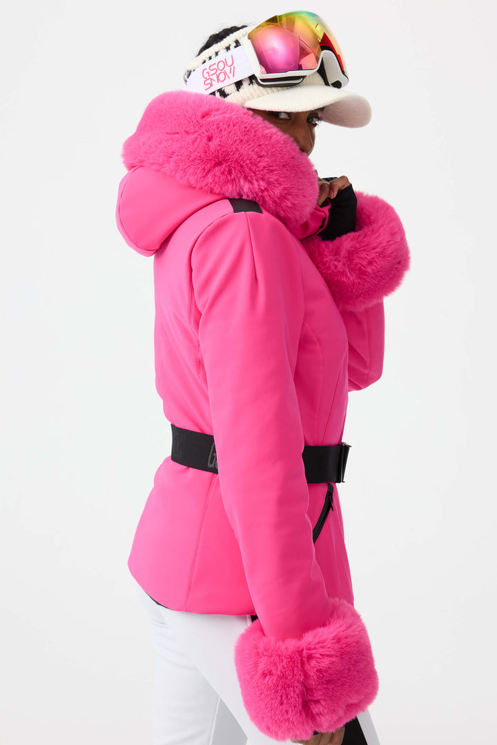 Women's Magenta 3D-Cut Faux Fur Stretch Insulated Ski Jacket