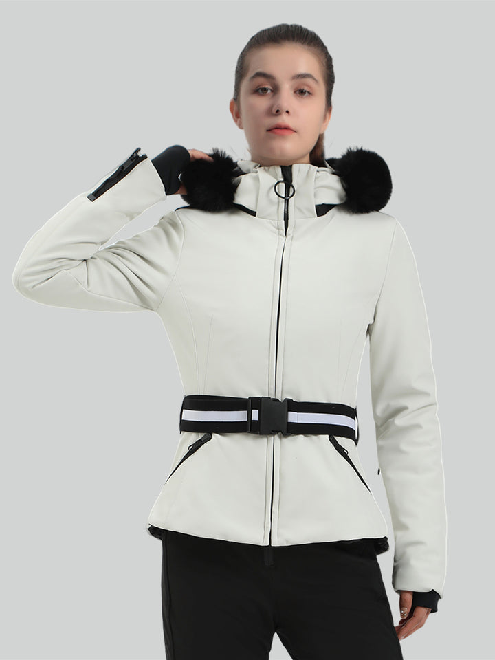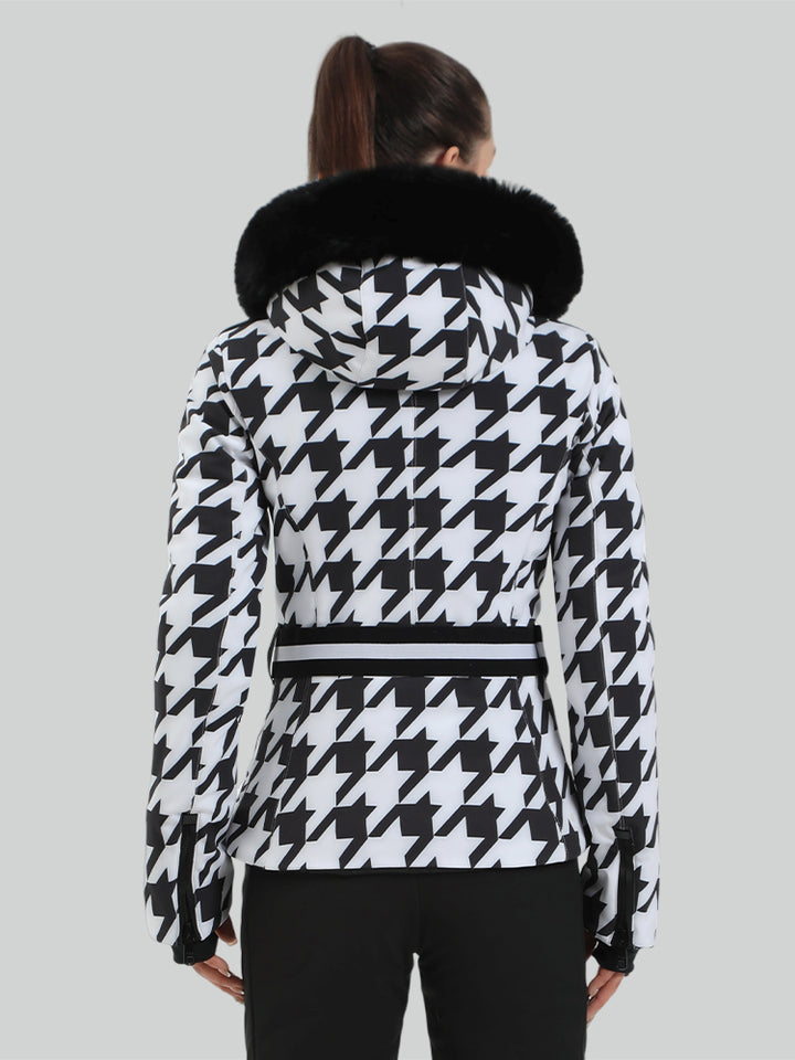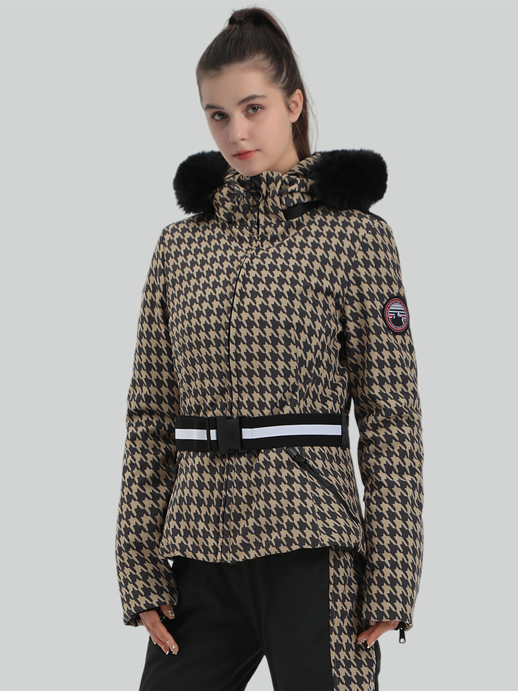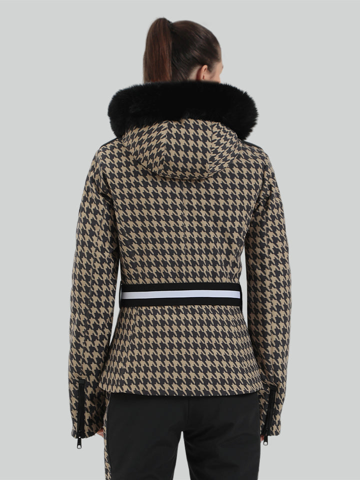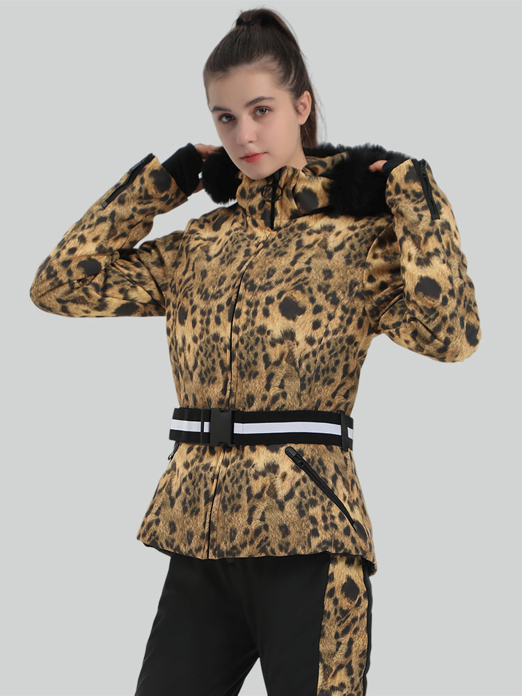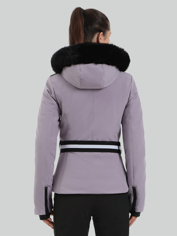 Warm duck down fills the hood and collar while warm polyester fills the entire body and is water-resistant and breathable, making it an indispensable piece of gear for skiing. The fluorescent shell adds both visibility and style. It also has a removable hood with faux fur trim.