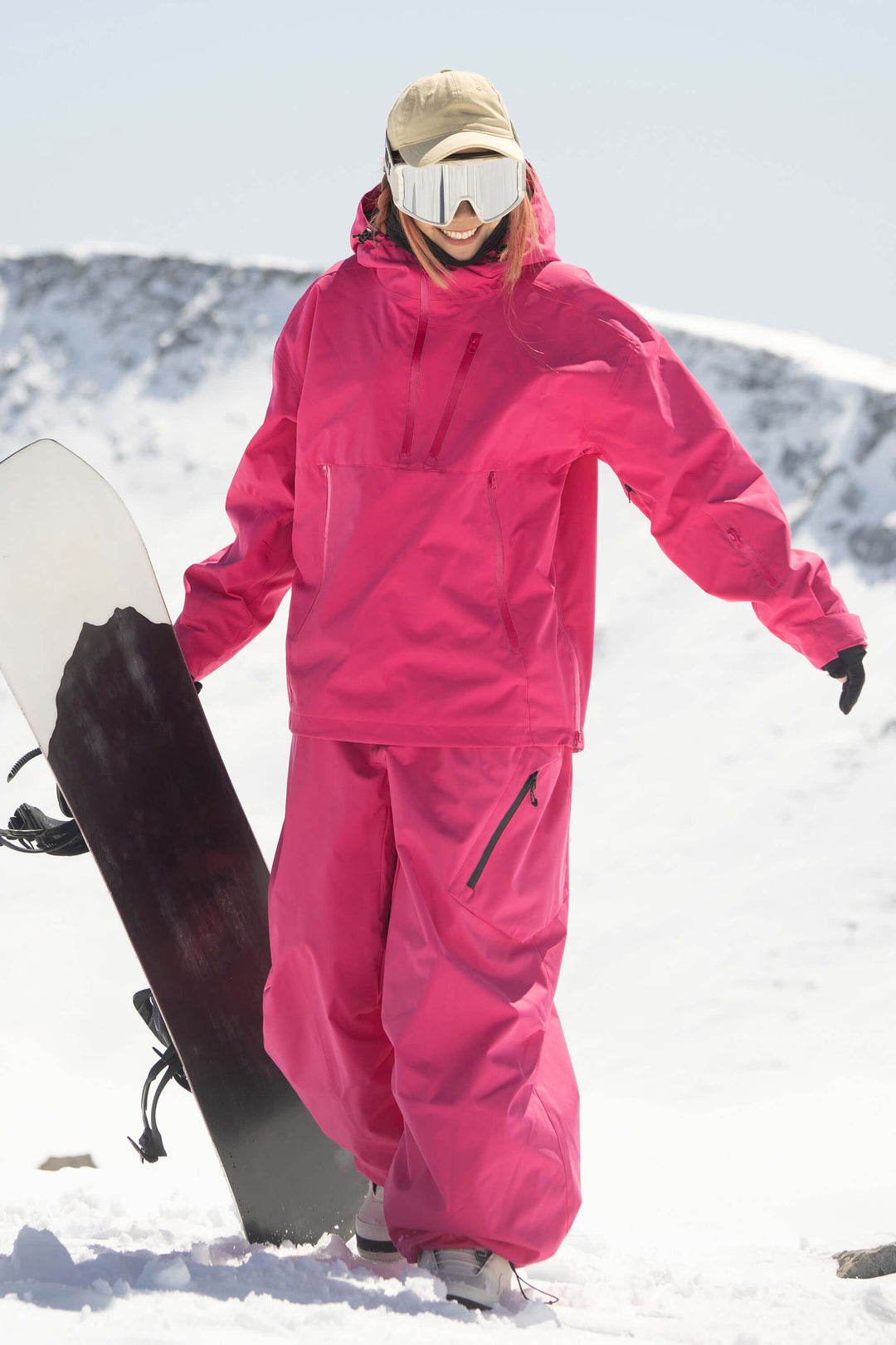 Built for deep snow and long days on the mountain, this oversized anorak offers full protection with a 15K waterproof, 10K breathable shell. Fully sealed water-resistant zippers and adjustable hood block out wind and snow, while the one-side two-way zip and center half-zip ensure easy venting. A powder skirt, thumbhole cuffs, and secure zip pockets keep you covered from first chair to last run.