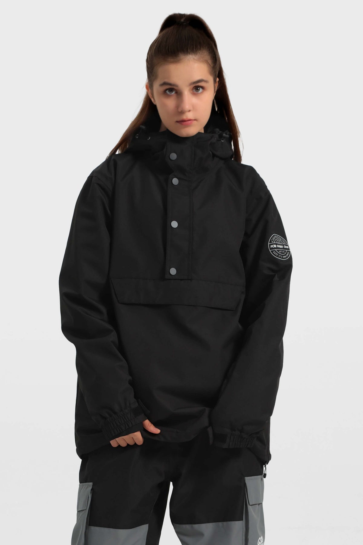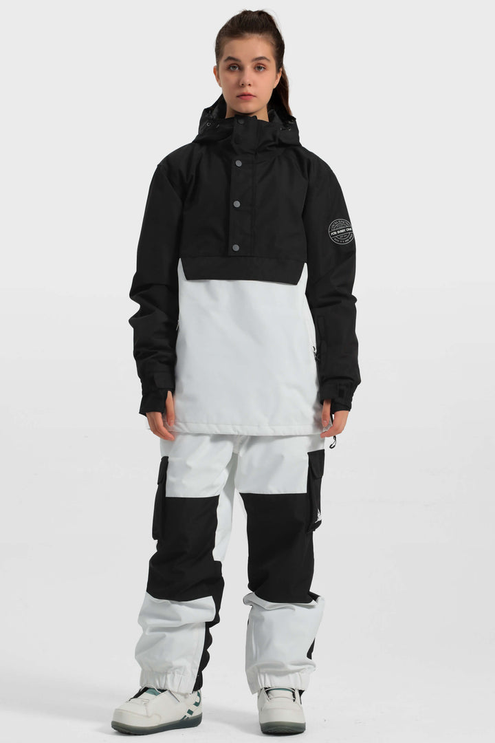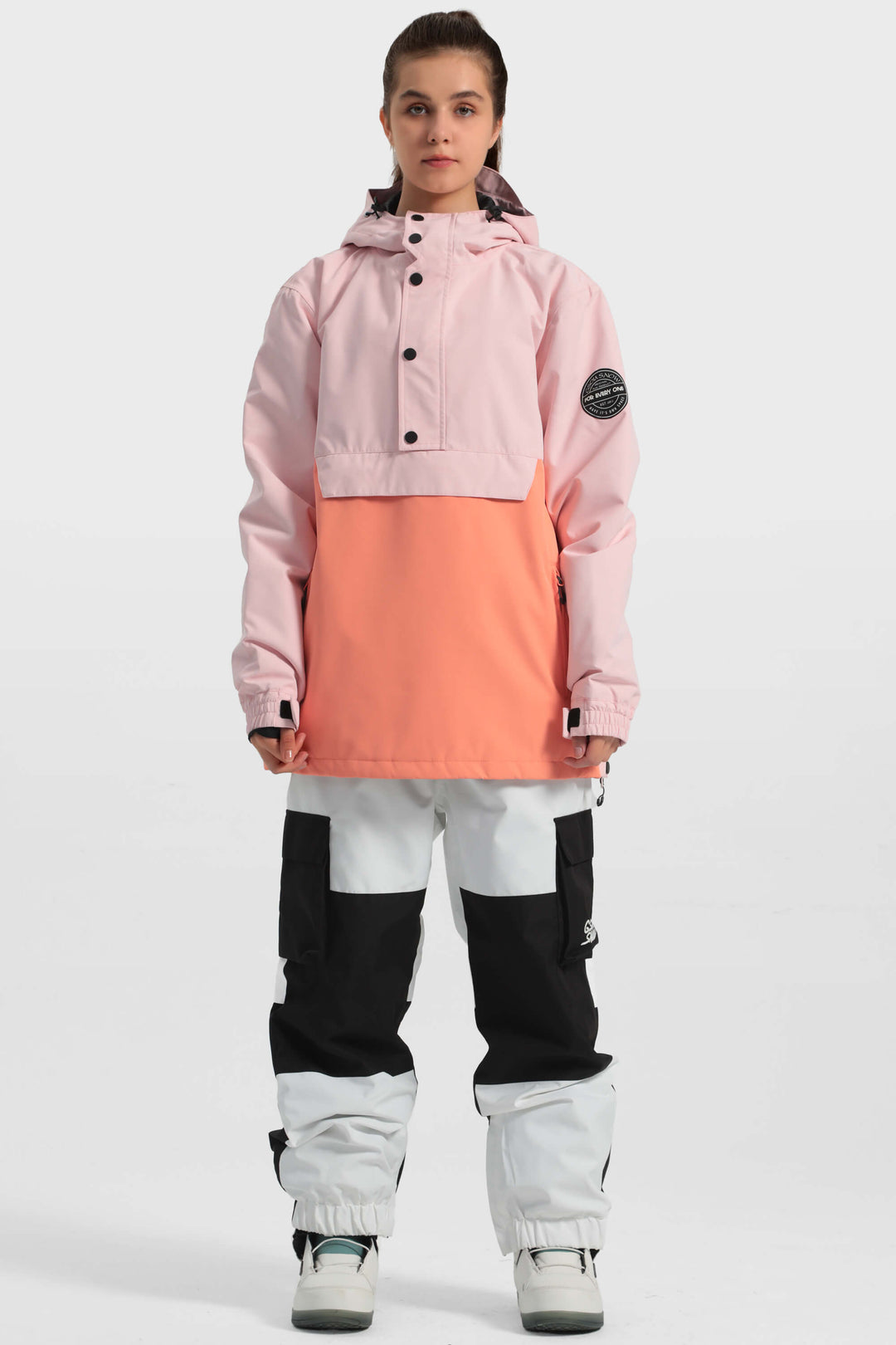The GSou Snow ski Hoodies feature a vibrant color scheme and are both waterproof and breathable. The adjustable hood is compatible with helmets and includes a drawstring. They have a large internal hidden pocket, hand pockets, and a left sleeve pocket.