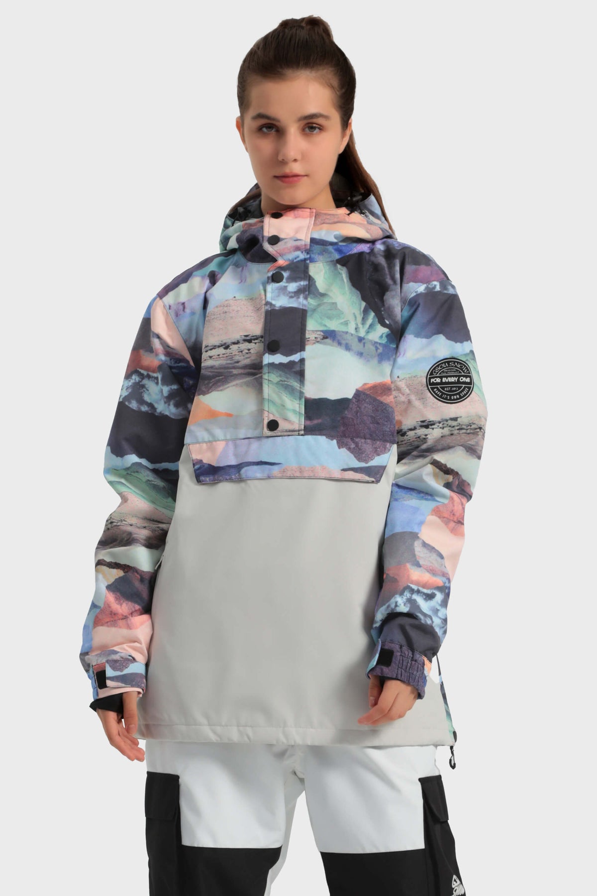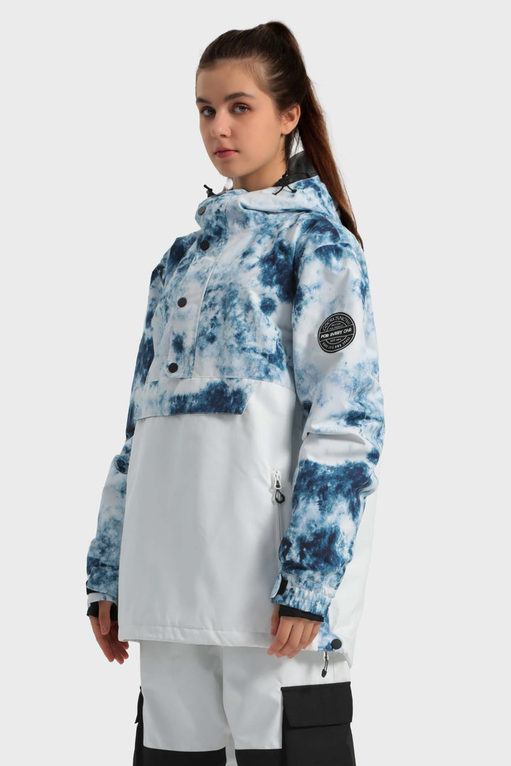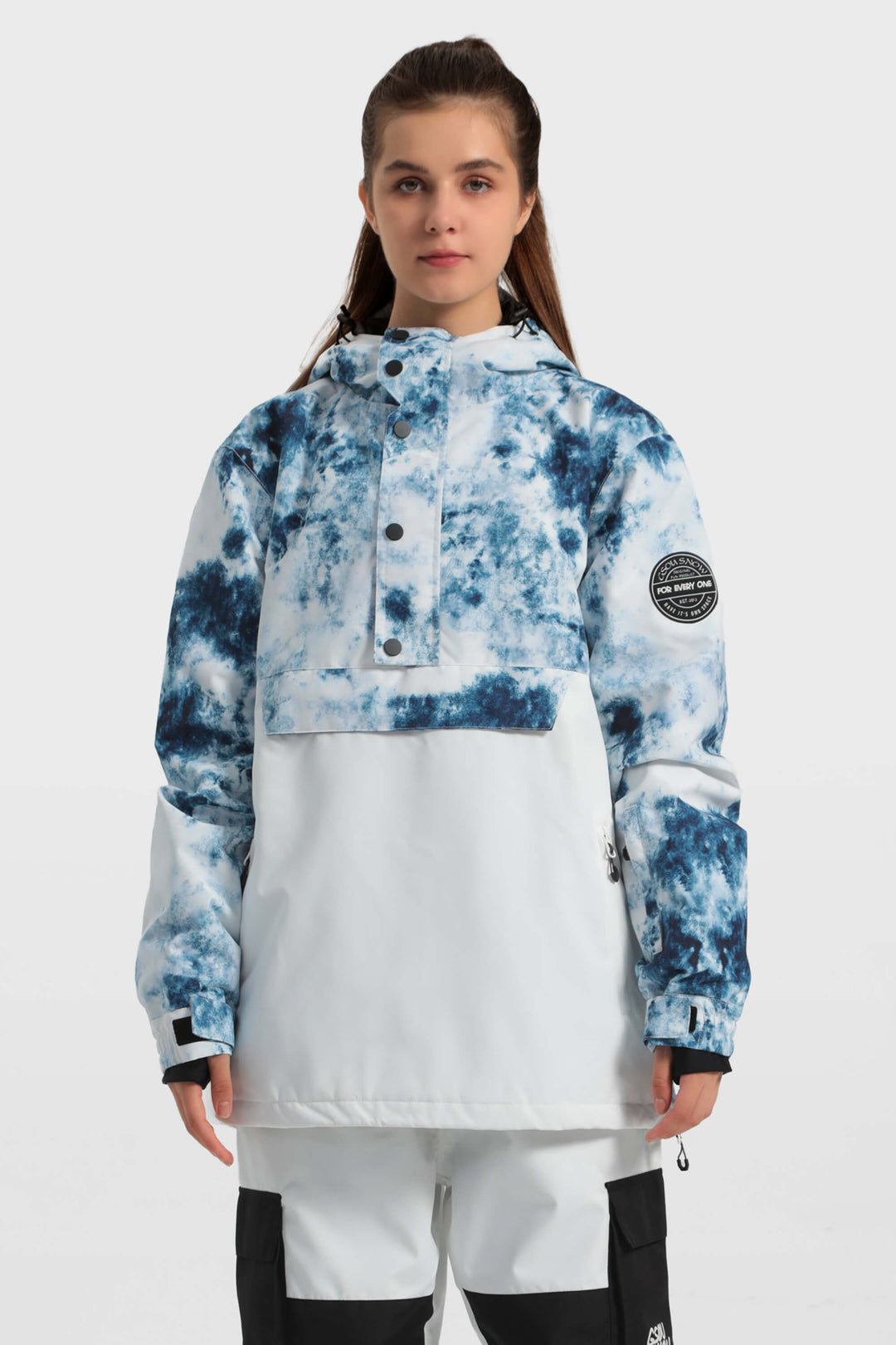Women's Tie-Dye Loose-Fit Multi-Snap Closure Waterproof Snow Anorak
