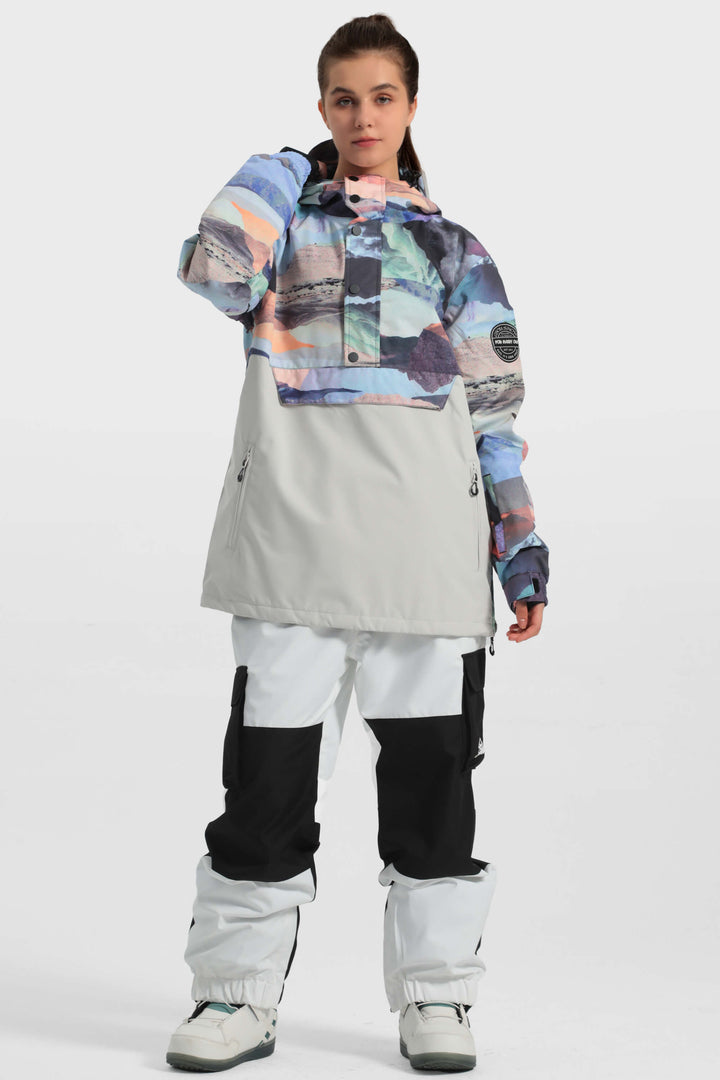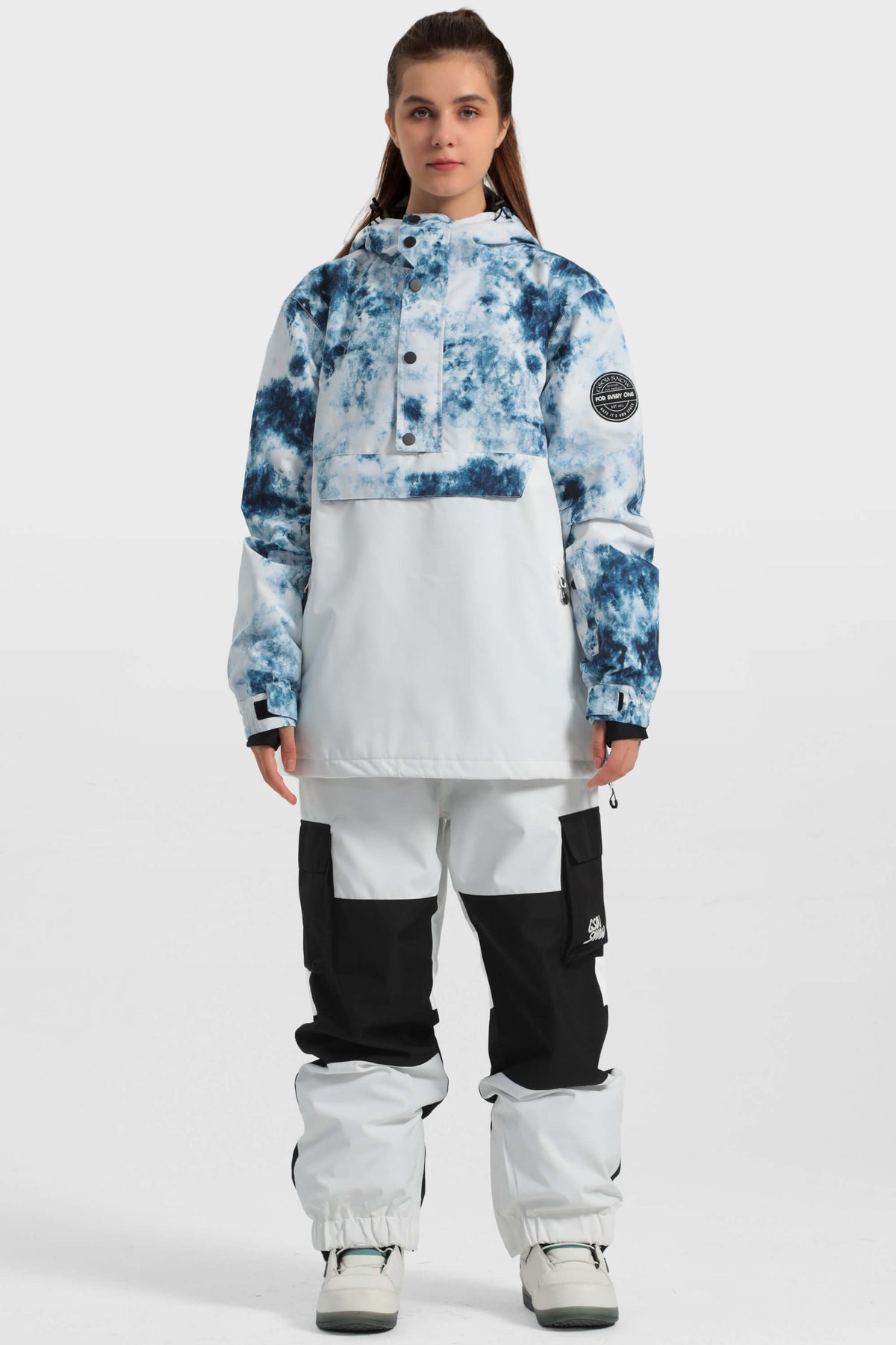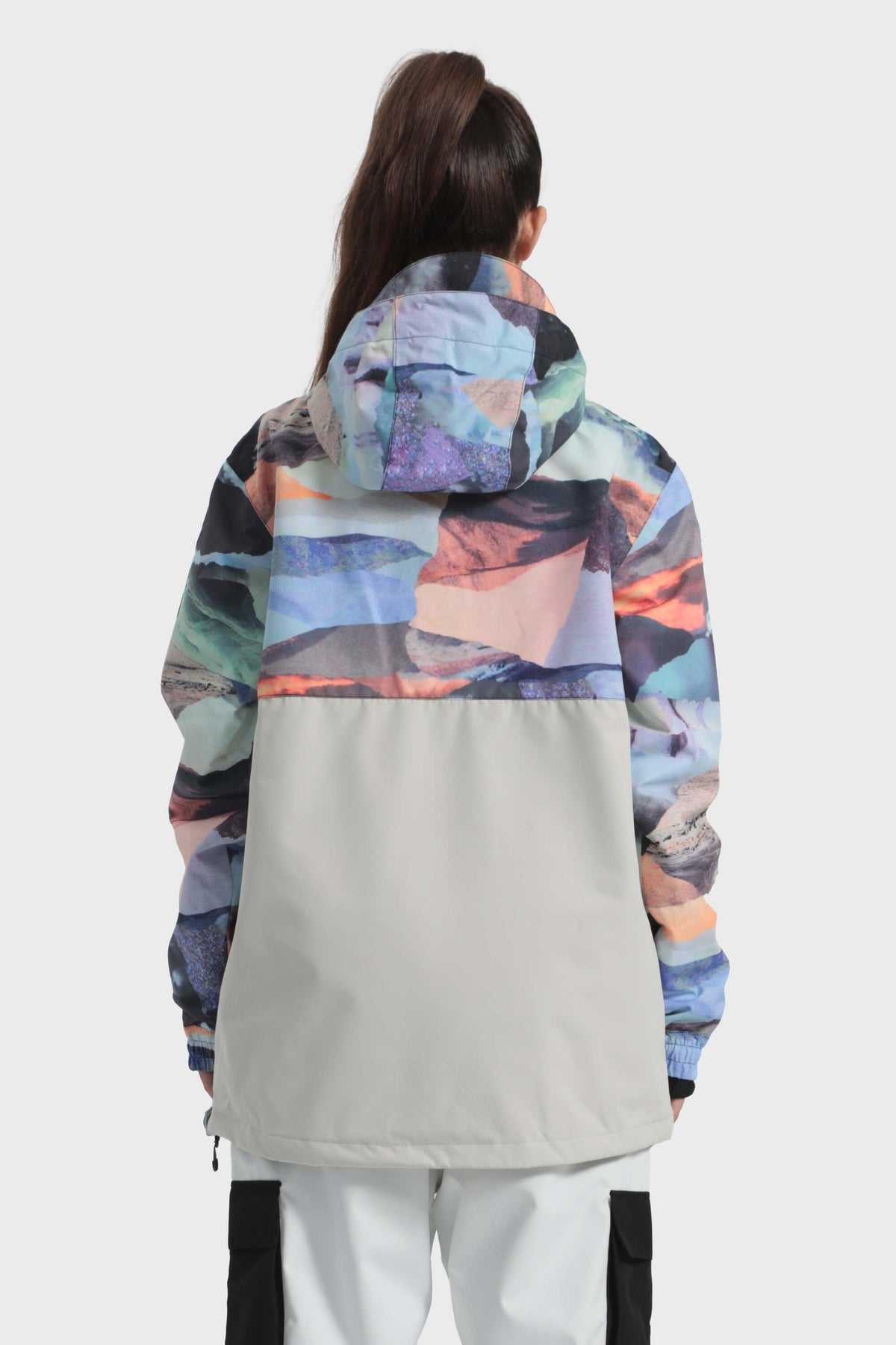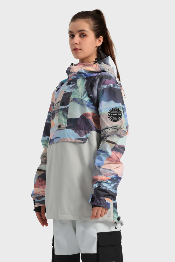 Women's Tie-Dye Loose-Fit Multi-Snap Closure Waterproof Snow Anorak
